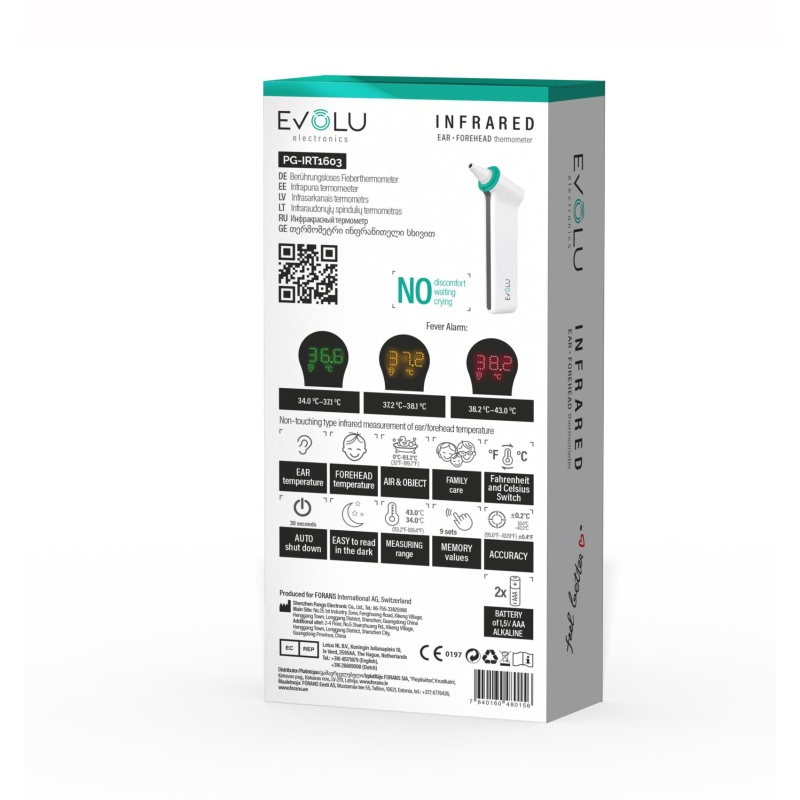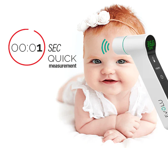 EVOLU 3in1 infrapuna termomeeter mõõdab temperatuuri kõrvast, otsmikult ja ka pindadelt – ideaalne kogu perele ning sobib nii kehatemperatuuri kui ka näiteks beebitoidu või lutipudeli temperatuuri mõõtmiseks 🍲🍼